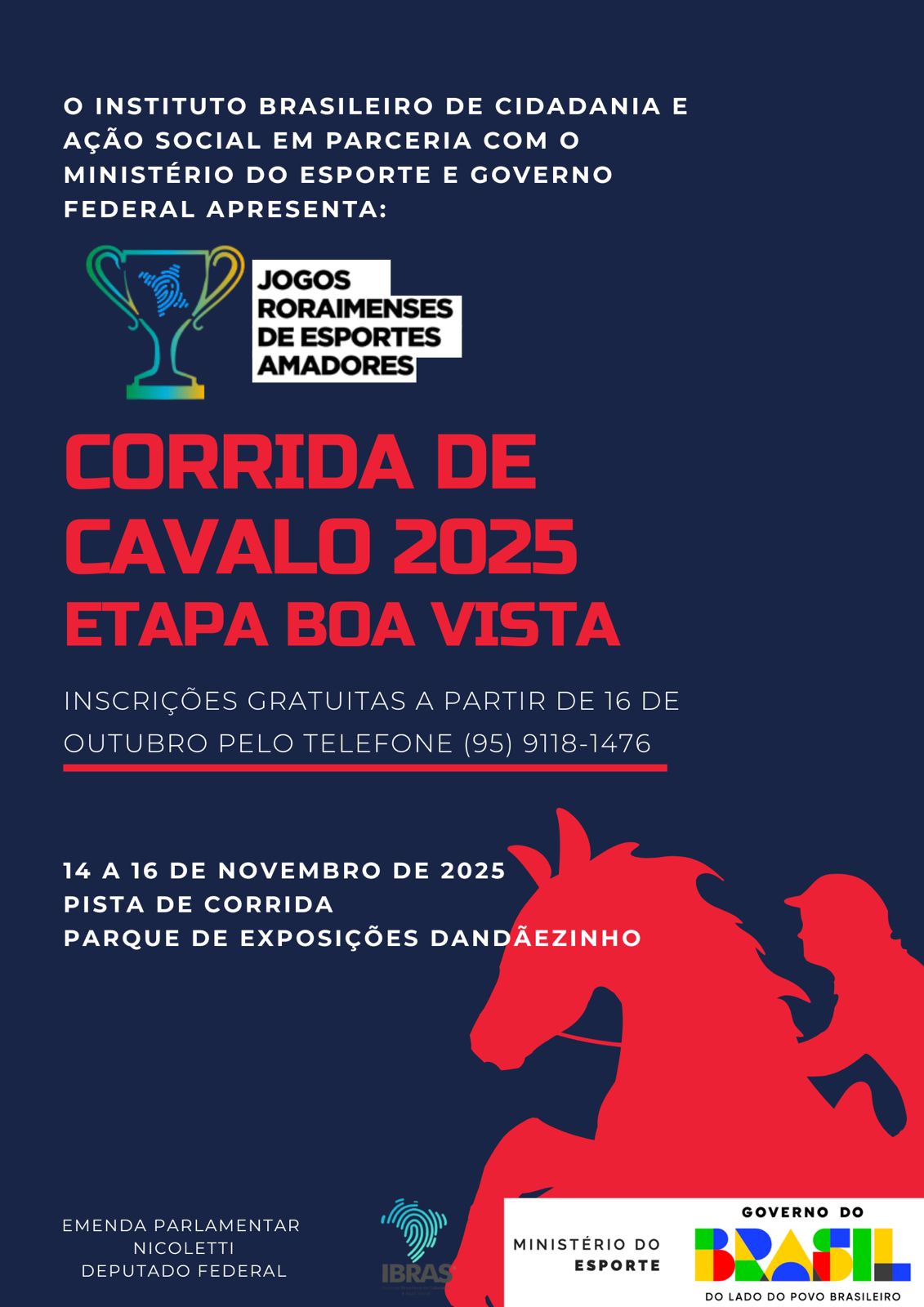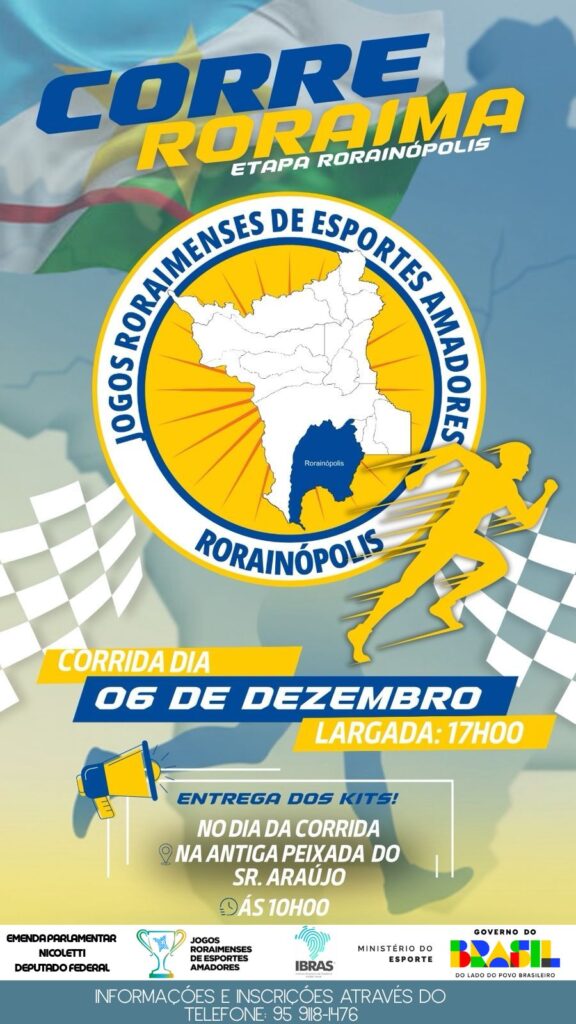 Galeria Banners dos Eventos Realizados I Corrida para Vencer a Diabetes Corrida de Cavalo 16-11-25 Corrida de Cavalo 15-11-25 Corrida com Cristo Corre Roraima - Bonfim 13-12-2025 Corre Roraima - Rorainópolis 06-12 Corre Roraima - Caracaraí 07-12